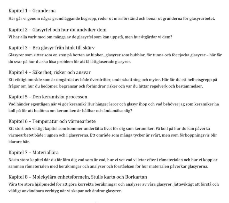 Om du är utbildare för keramikutbildning, till exempel Folkhögskolor och liknande, och t ex vill köpa en klassuppsättning böcker - hör av dig! Jag kan ge er ett bra erbjudande på både böcker och mina kurser, anpassade efter era behov!